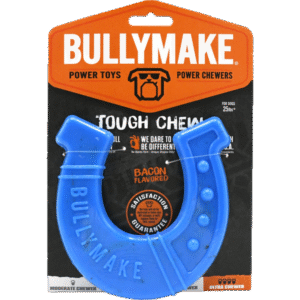 Unleash the fun and durability your dog deserves! The Bullymake Tough Horseshoe Bacon Flavour Dog Chew Toy is specifically designed for power chewers who love a challenge. Crafted for dogs 25 lbs and up, this ultra-durable chew toy is made from premium materials that withstand even the toughest jaws.
