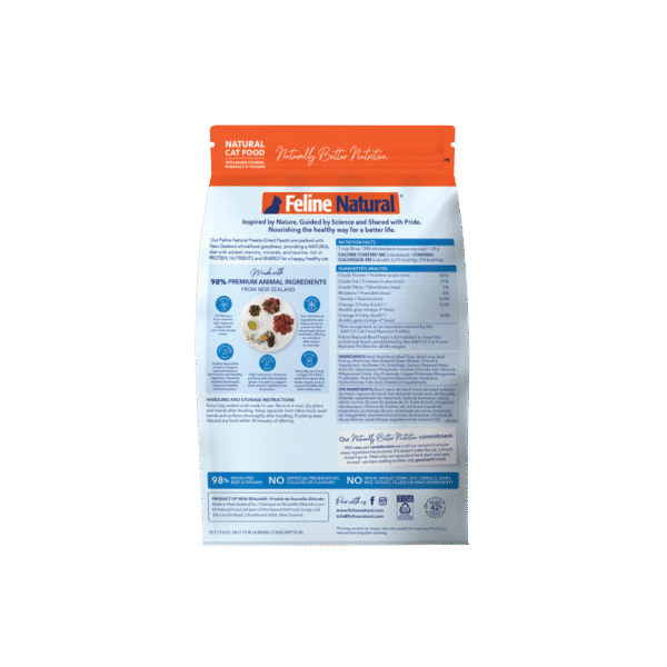 Treat your feline companion to the ultimate in nutrition and flavor with Feline Natural Beef Feast Freeze-Dried Cat Food. Made with 98% grass-fed beef, organs, and bones sourced from pristine New Zealand farms, this premium freeze-dried recipe is crafted to deliver the natural, protein-rich diet your cat craves.