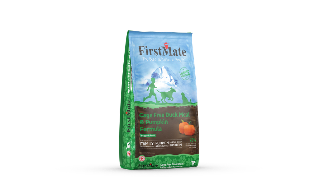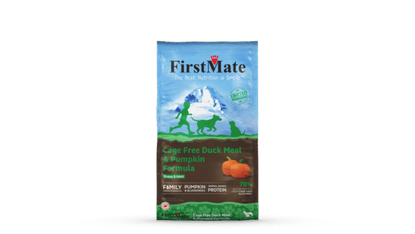 FirstMate Cage Free Duck Meal & Pumpkin Formula is made in a family-owned facility in British Columbia and is ideal for dogs of all breeds and life stages. This limited ingredient formula uses a 78% cage-free duck meal with 22% pumpkin and potatoes mixed with antioxidant-rich blueberries, raspberries and cranberries with other essential vitamins and minerals.