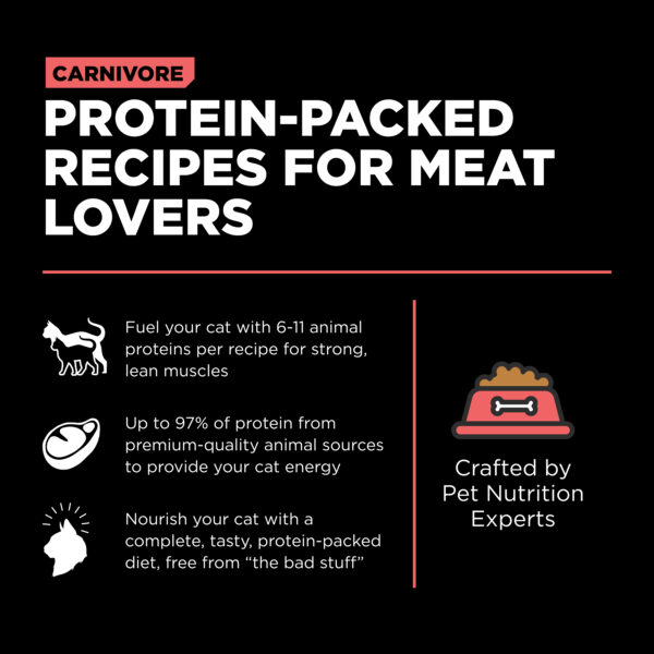 Your feline friend deserves top quality nutrition. That’s why Go! Solutions Carnivore Salmon + Cod Grain Free Recipe for cats is proudly made in Ontario, Canada by expert pet nutritionists. Crafted with real premium-quality fish and nutrient-rich fruits & veggies, this protein-rich food supports strong, lean muscles and good digestion.