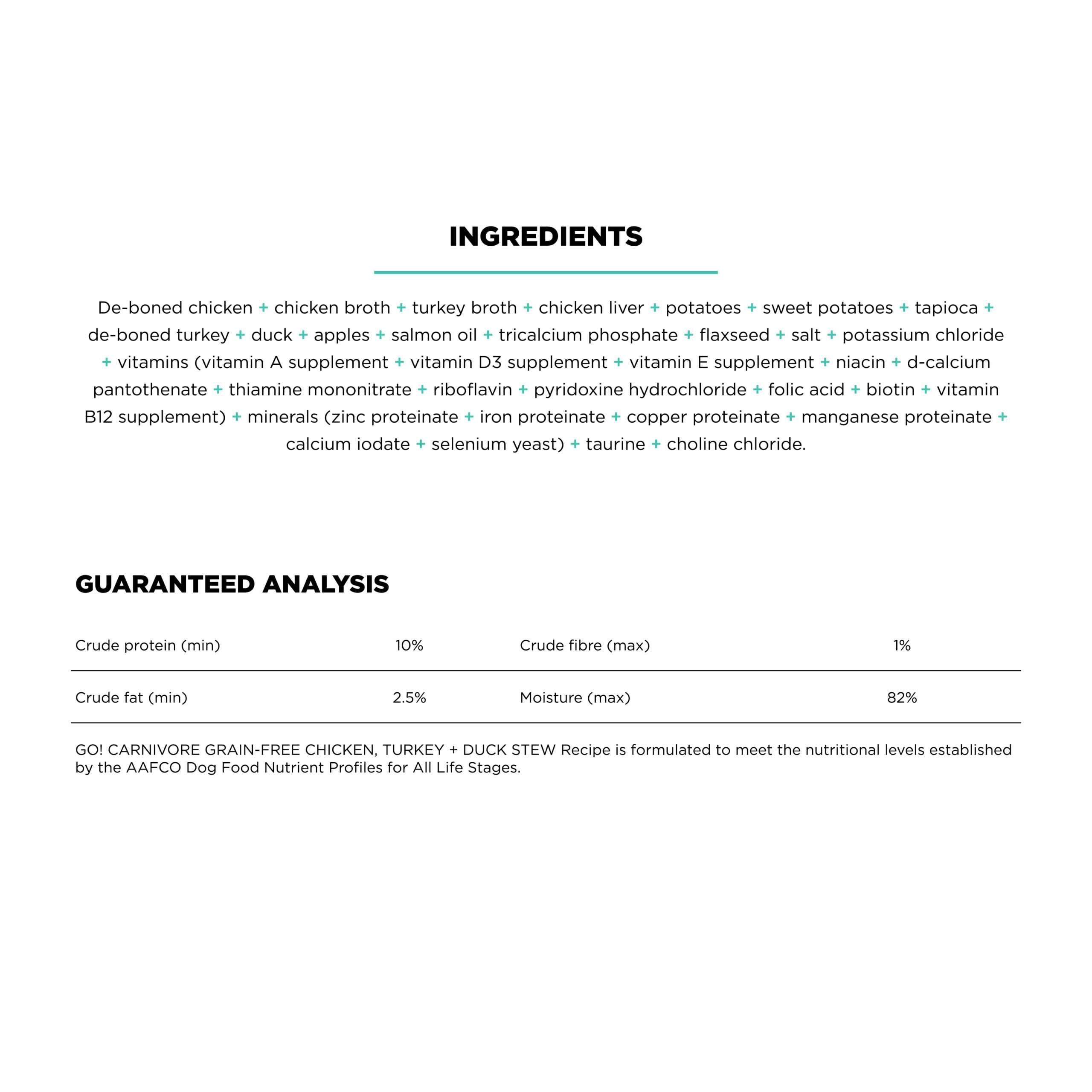 Go! Dog Solutions Carnivore Grain Free Chicken, Turkey + Duck Stew – 12.5oz