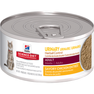 Hill’s Science Diet Adult Hairball Control Savory Chicken Entree provides nutrition to help avoid hairball formation for cats. Healthy mineral balance; supports the health of the whole urinary system, with optimal levels of magnesium. Natural fiber.